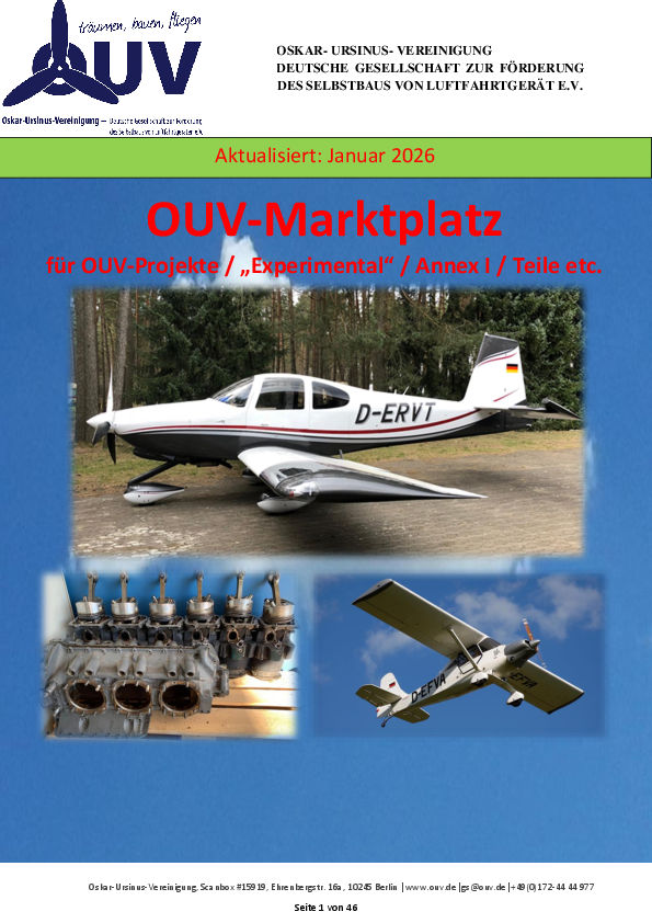 Wenn Du etwas verkaufen willst oder auf der Suche nach etwas bist, sende bitte dein Angebot oder deine Suchanfrage mit einer genauen Beschreibung und etwaigen Fotos, sowie der Preisvorstellung und deine Kontaktdaten (E-Mail Adresse - Telefonnummer) per E-Mail an office@amateurflugzeugbau.at Wir werden die Anzeige dann ehestbald auf unserem Marktplatz veröffentlichen.